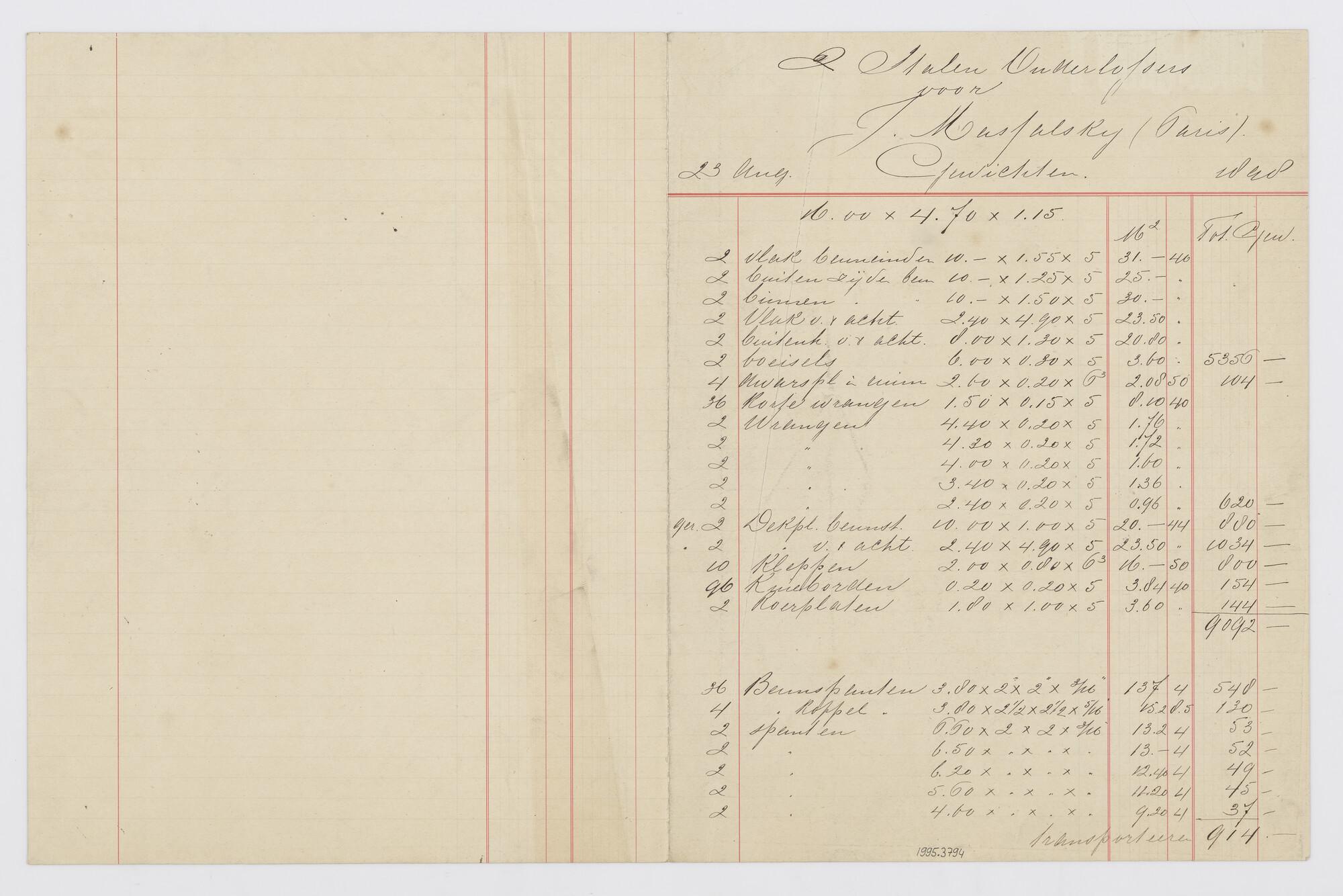 Spantenlijst van het vrachtschip 'Baron van Heemstra'