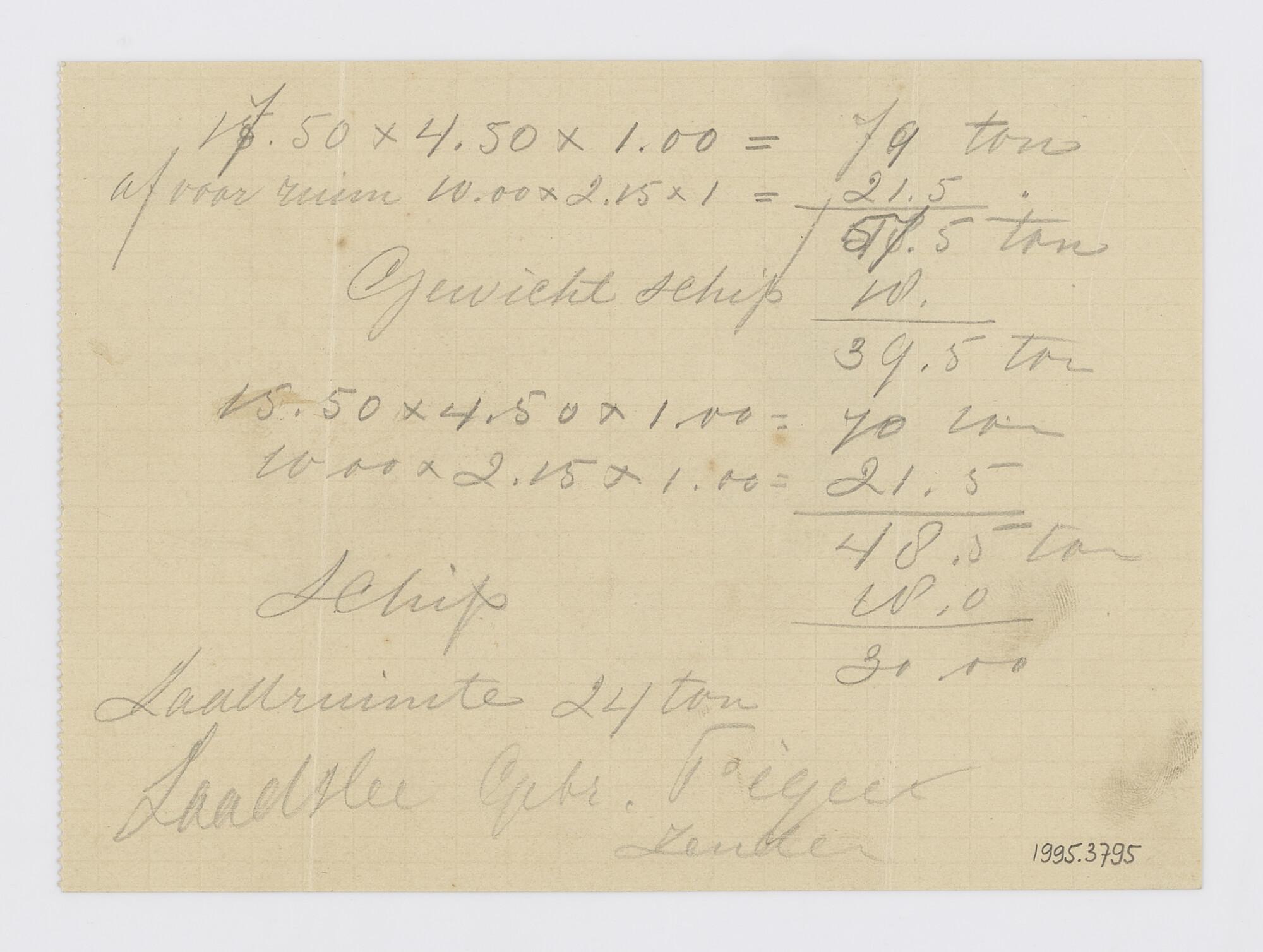 Berekening waterverplaatsing van het vrachtschip Vecht