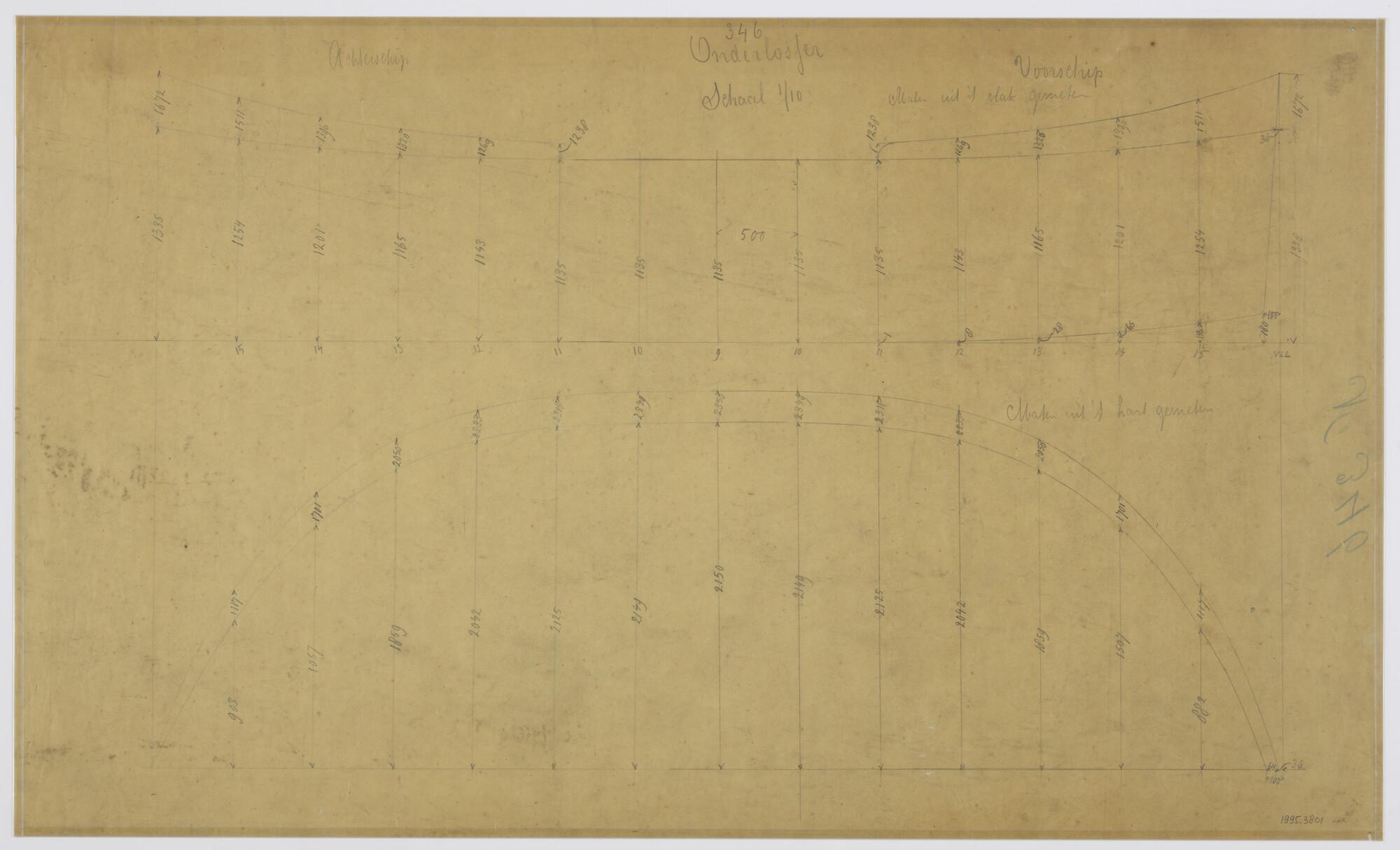 Lijnenplan voor- en achterschip van een onderlosser