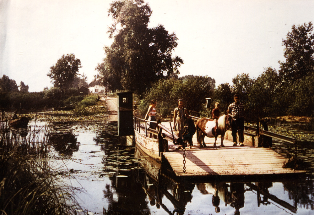 Kleurenfoto van veerpont van Pannerden naar Doornenb...