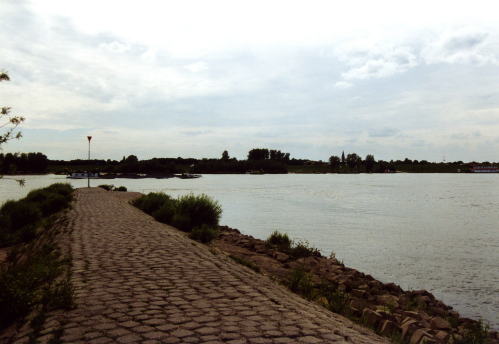 Kleurenfoto van de Pannerdense overlaat in 1995