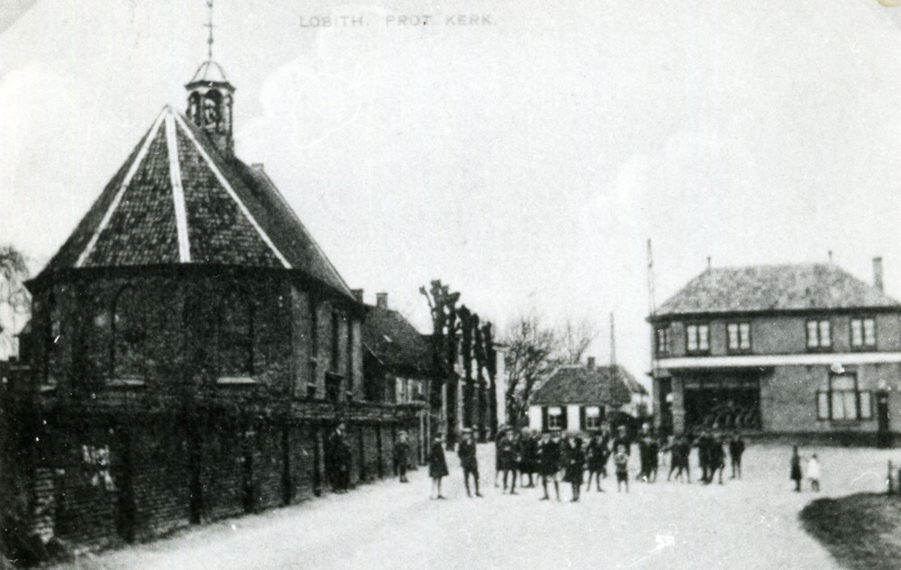 Zwart-wit foto van hoogwater te Tolkamer in maart 1906