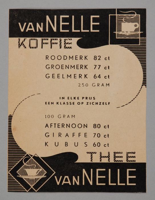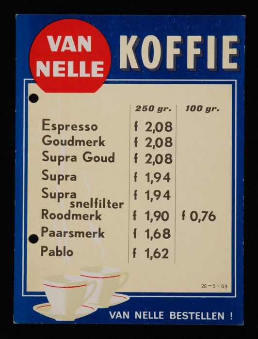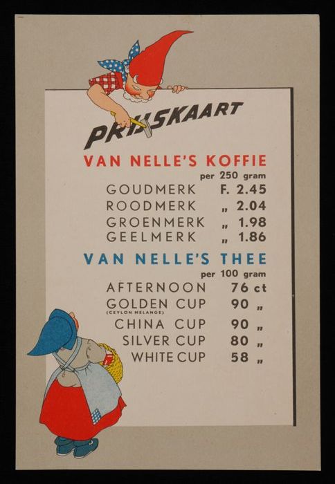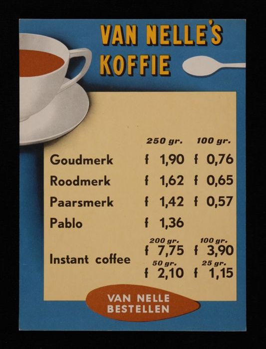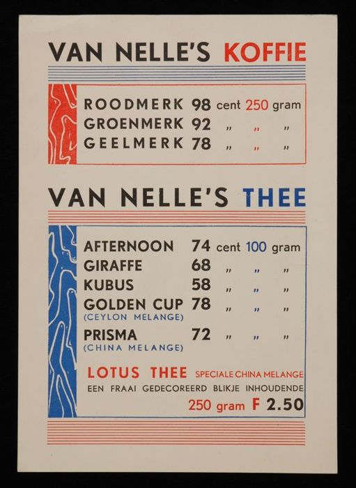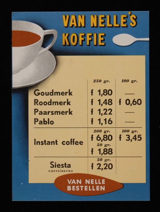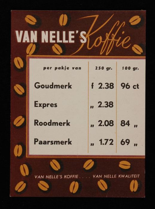 Kleine prijslijst Van Nelle's koffie met rondom koff...