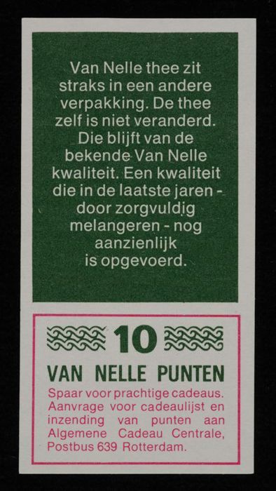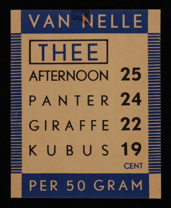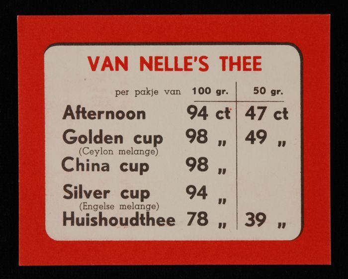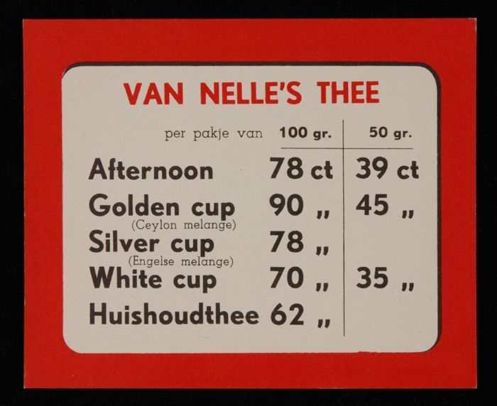 Kleine prijslijst Van Nelle's thee, met halve kop th...