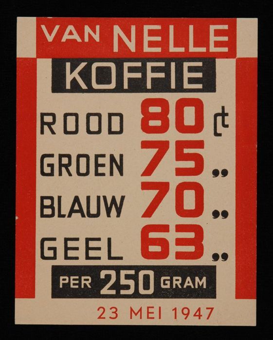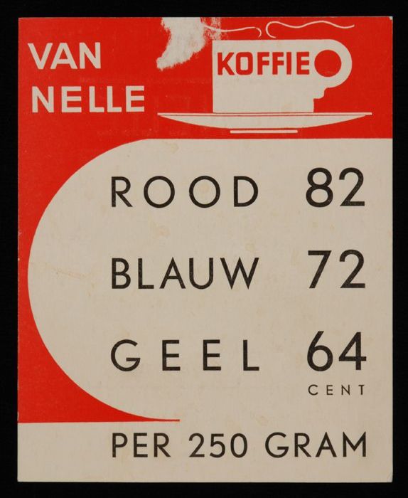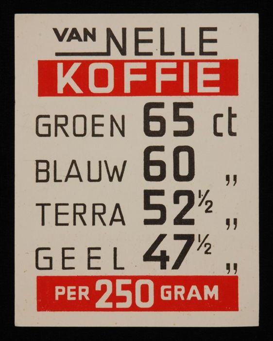 Kleine prijslijst drie merken Van Nelle's koffie met...