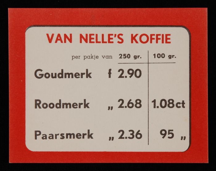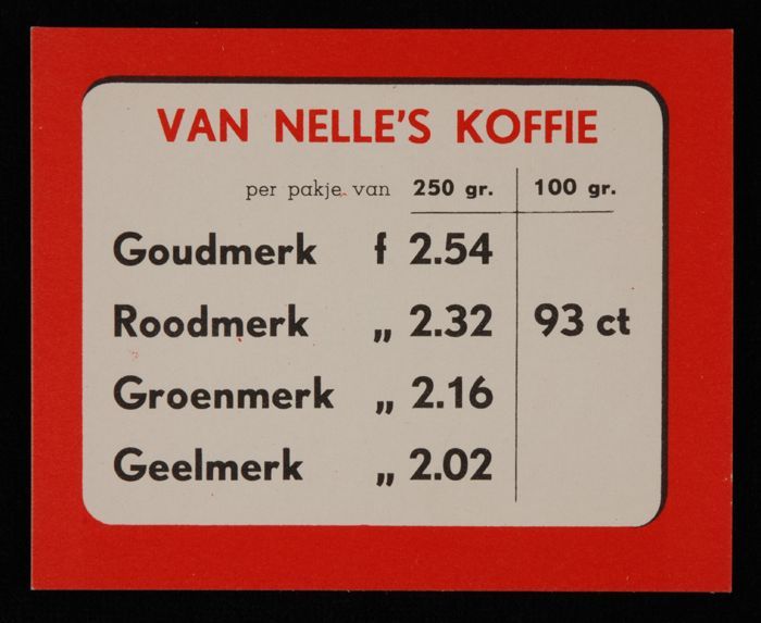 Kleine prijslijst met prijzen Van Nelle's koffie, ro...