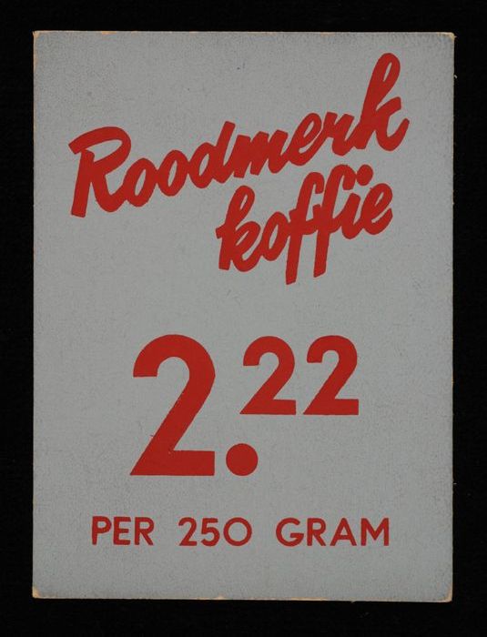 Kleine reclamebord of prijskaart Van Nelle's "Roodme...