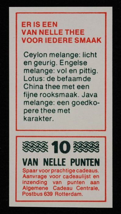 Briefkaart met prijslijst Van Nelle's koffie, rood e...