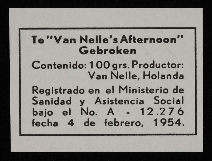 Kleine reclamebord of prijskaart Van Nelle's "Aftern...