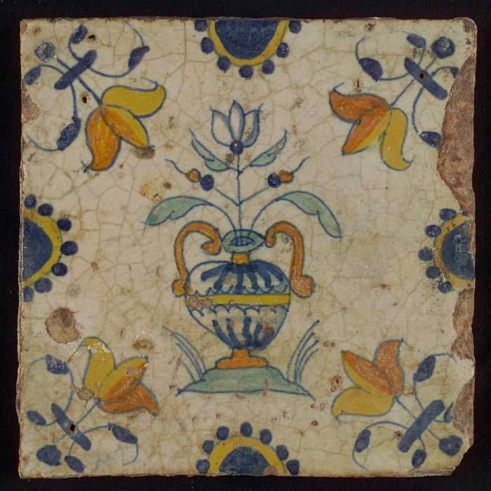 Bloemtegel, bloempot, halve rozet in het midden van ...