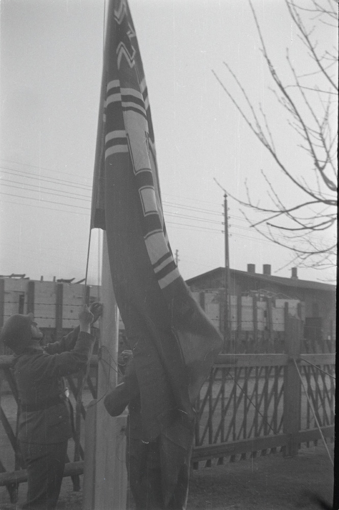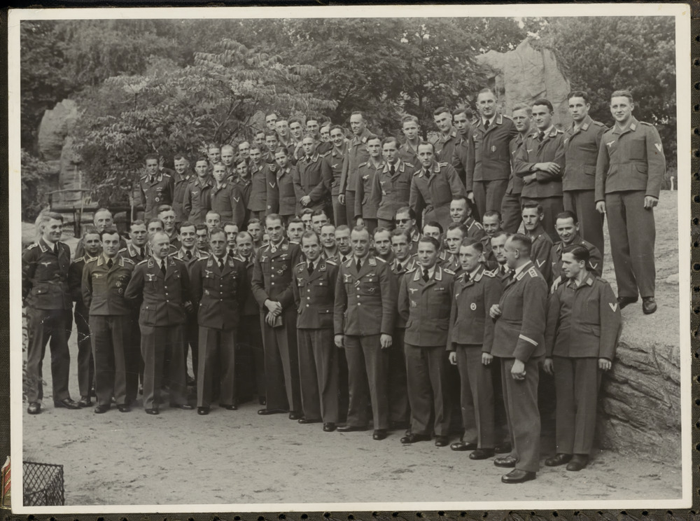 Luftwaffe militairen en vrouwen bij een begrafenis.