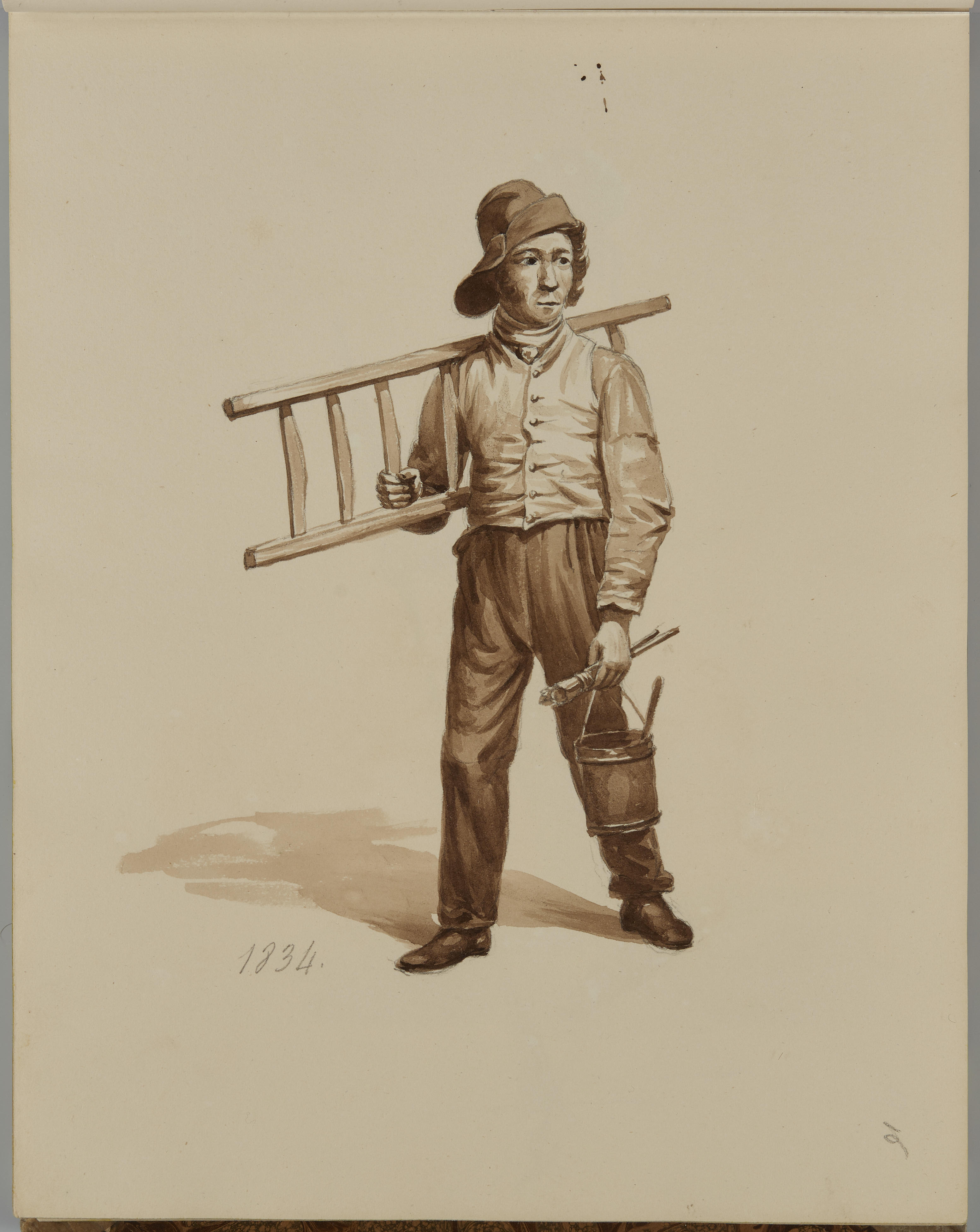 Tekening van een schilder met ladder, 1834