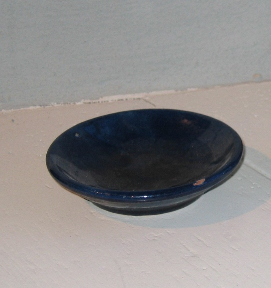 Blauw rond aardewerk schaaltje, afkomstig uit het in...
