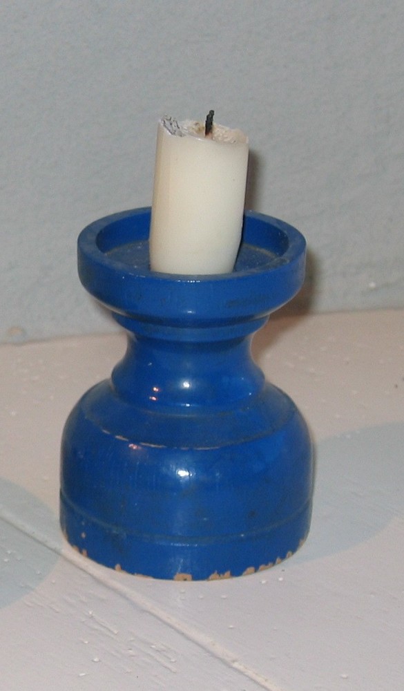 Houten blauwgeschilderde kaarsenstandaard, afkomstig...