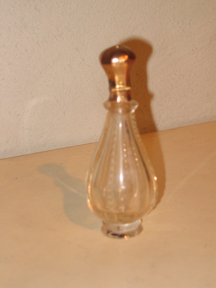 Parfumflesje met goudkleurigedop geslepen glas, afko...