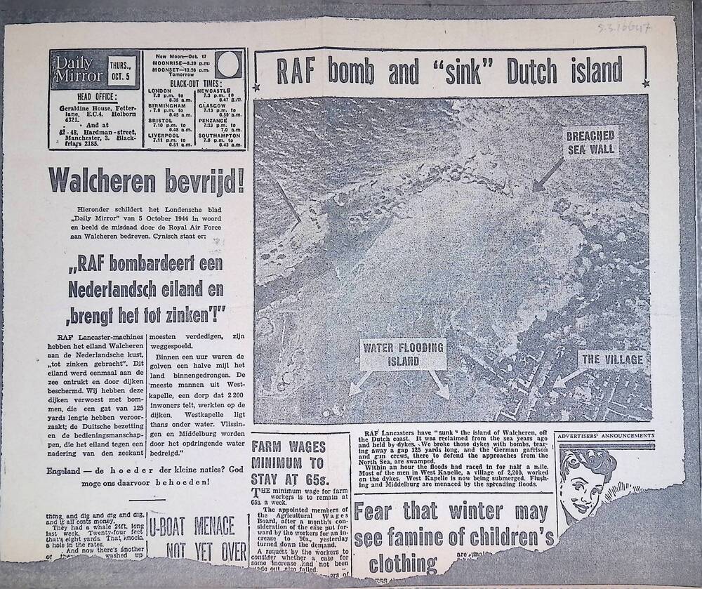 Walcheren bevrijd! (met overdruk van The Daily Mirro...