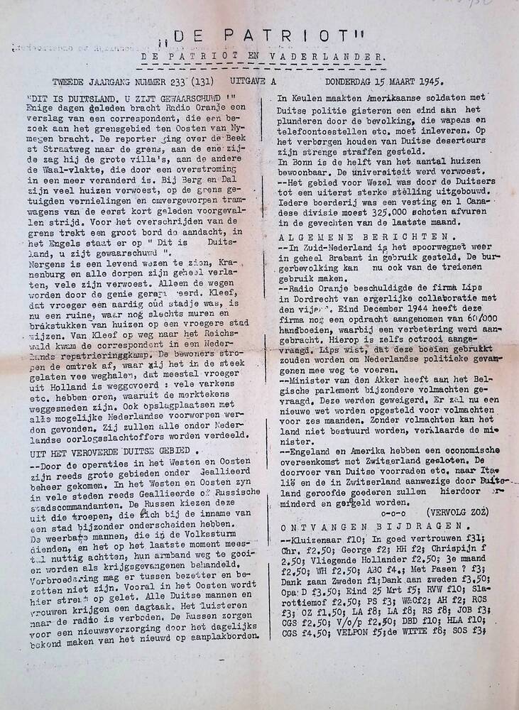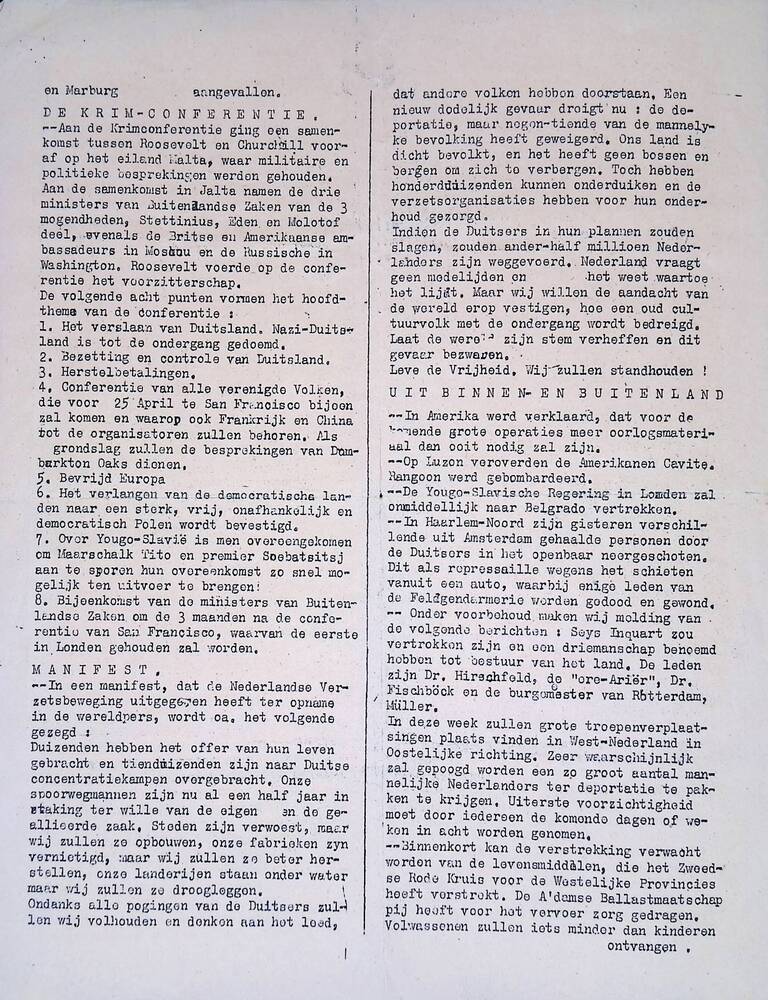 Rapport, Burgemeester van Schoondijke, 18 mei 1945.