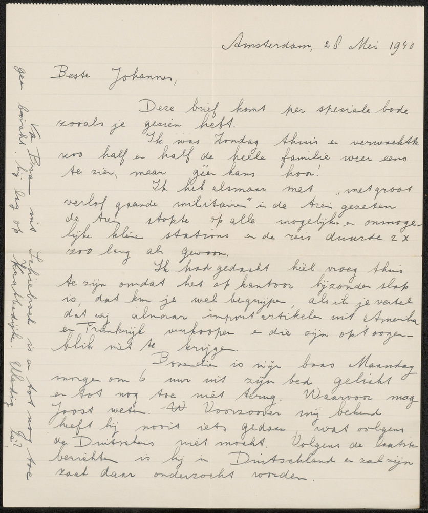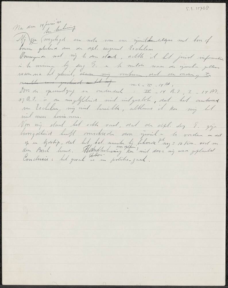 Brief betreffende sergeant Eeckelaar die onrechtmati...