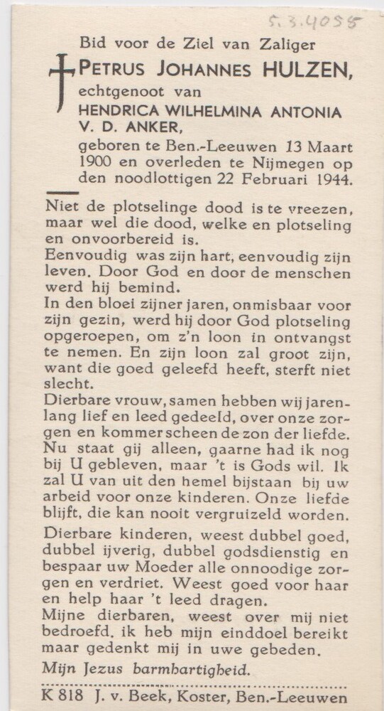 Brief (Kopie) aan Hubert van Albert 14-02-1944