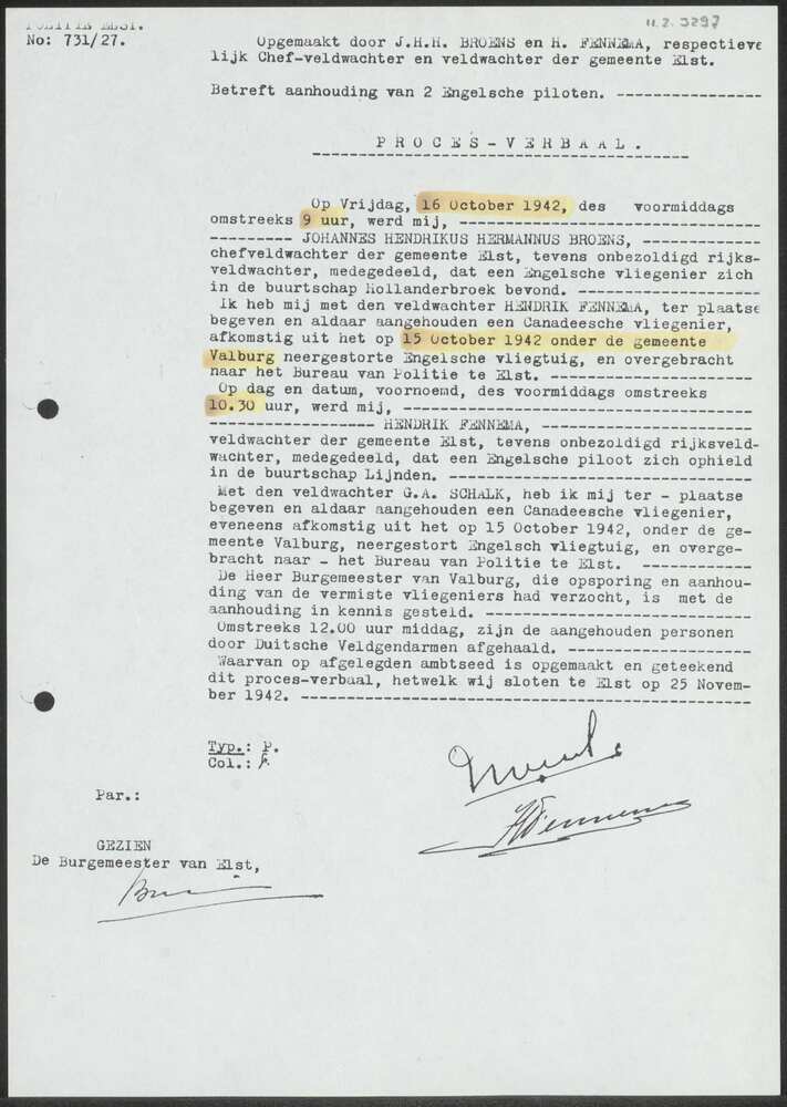 Proces-Verbaal No. 731/27 Politie Gemeente Elst 25 n...