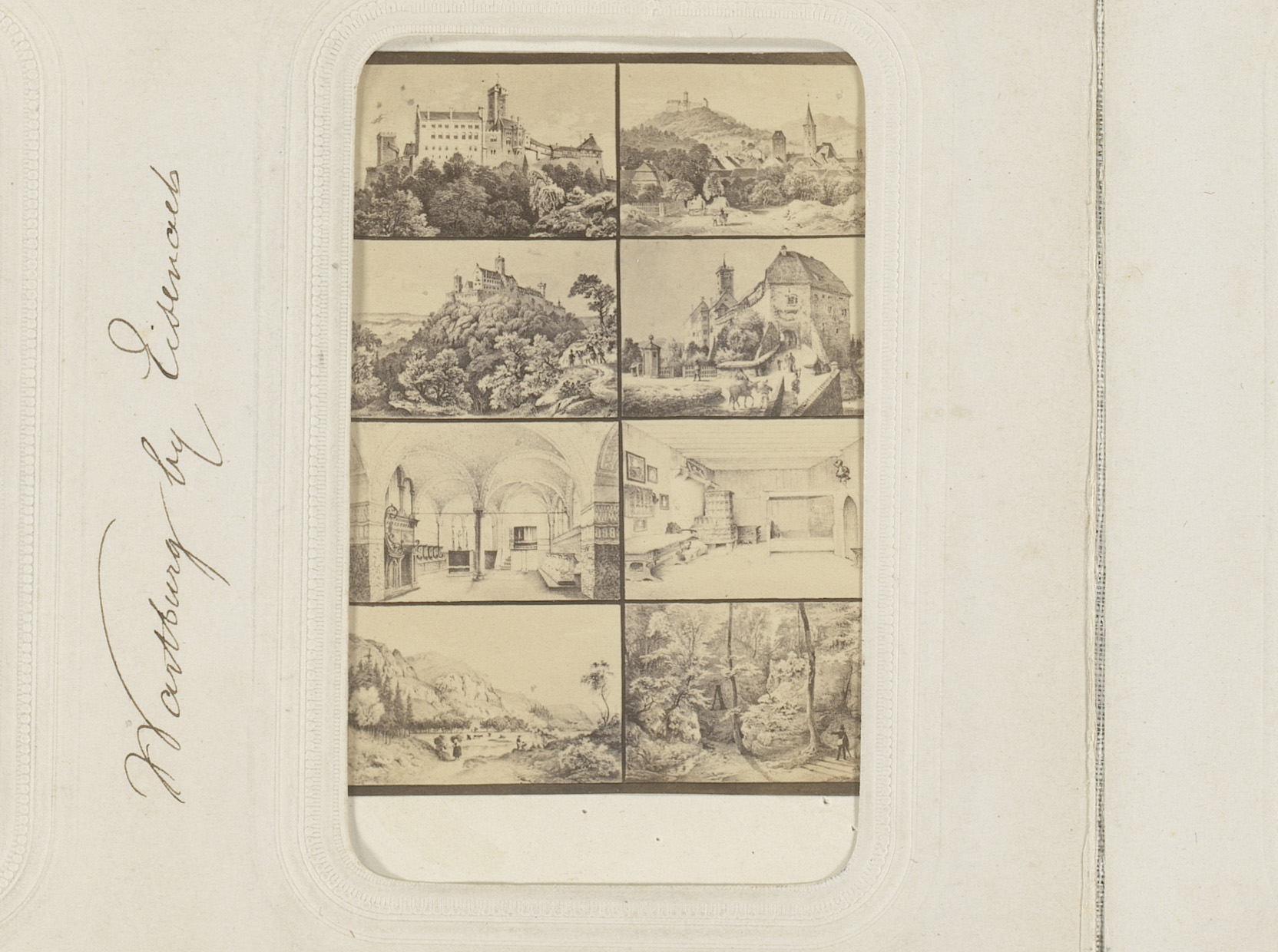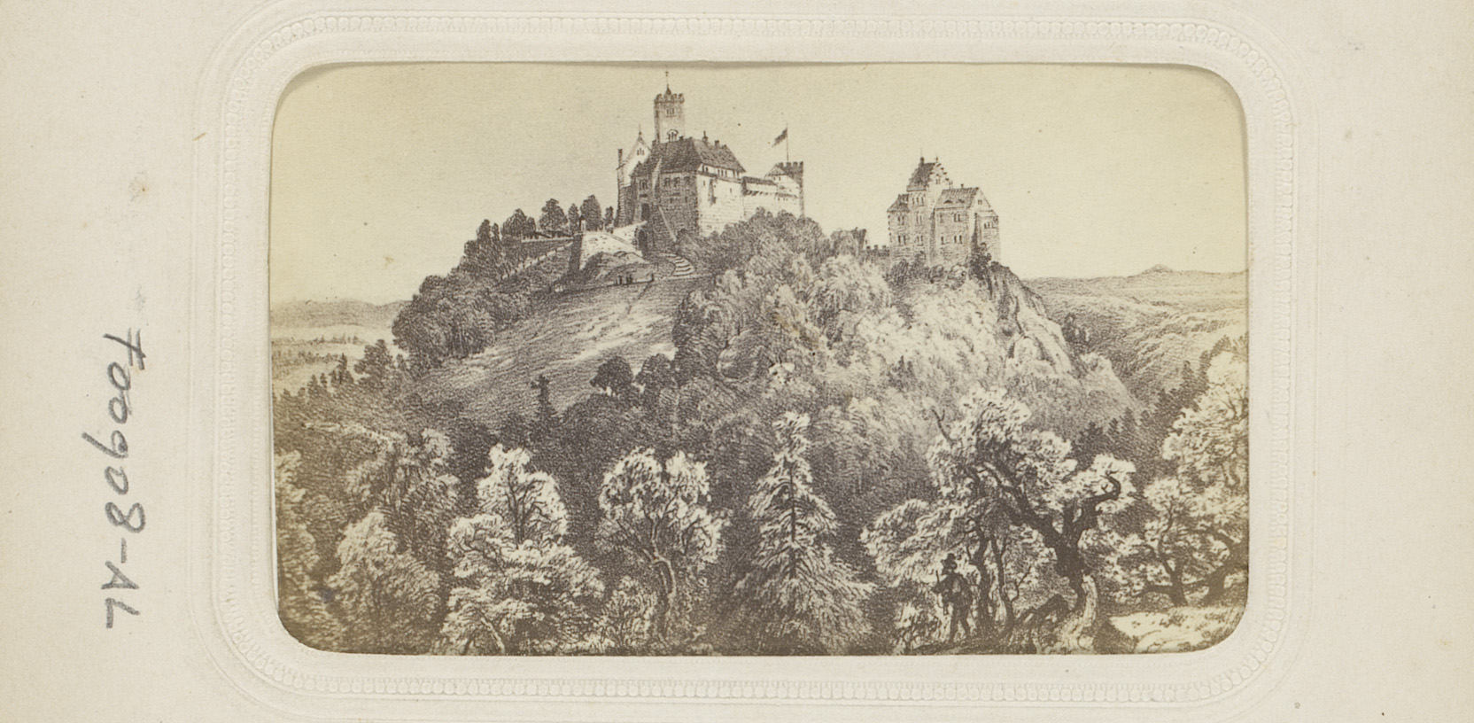 Fotoreproductie van een prent van kasteel Wartburg