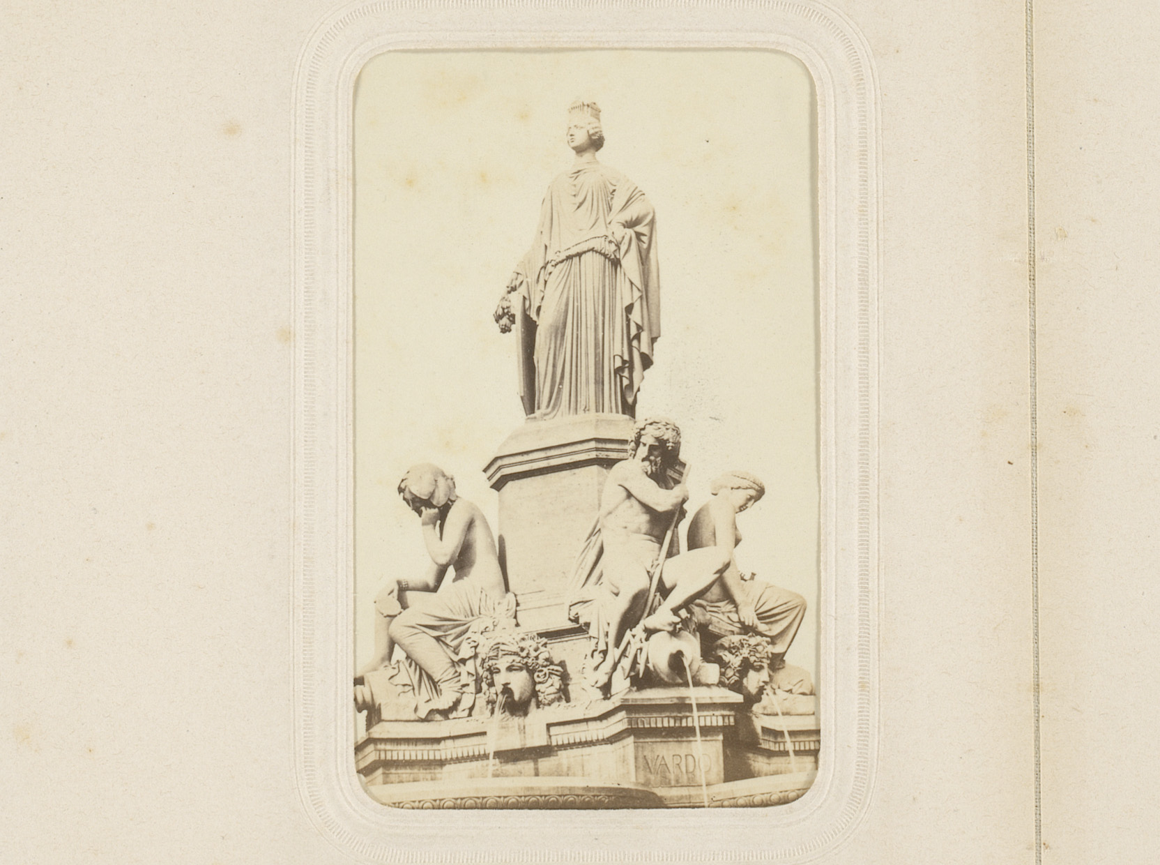 Fotoreproductie van een prent van het Herculesmonume...