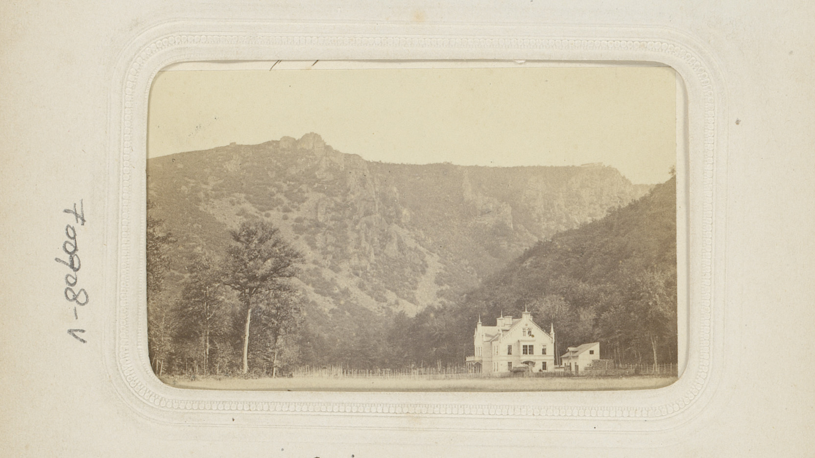 Fotoreproductie van een tekening van een heuvellands...