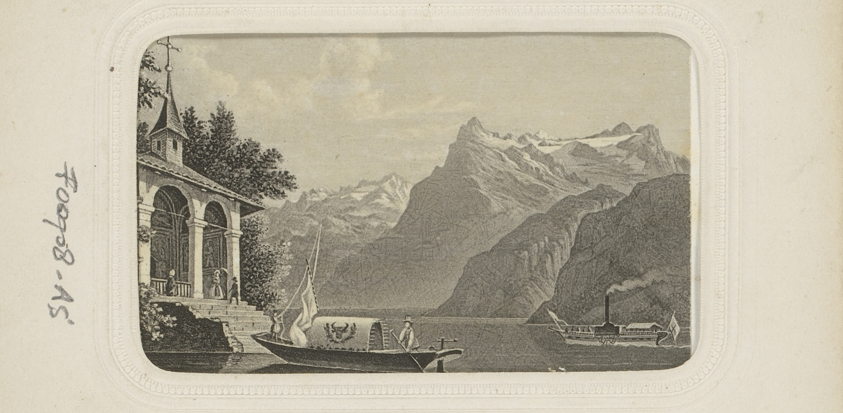 Fotoreproductie van een prent van de Tellskapelle