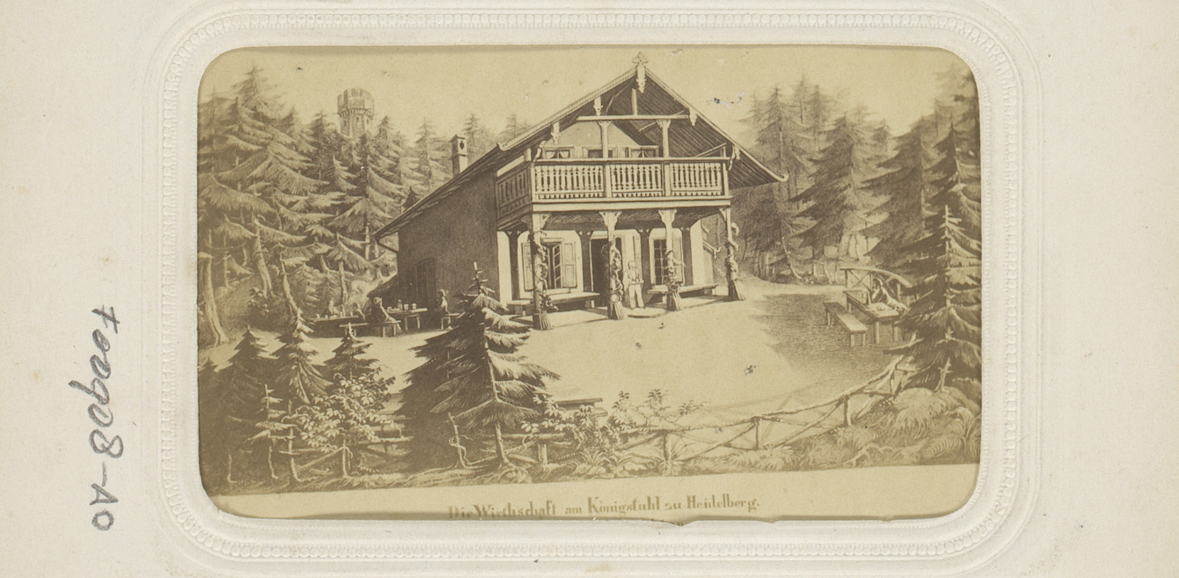 Fotoreproductie van een prent van een huis op Königs...