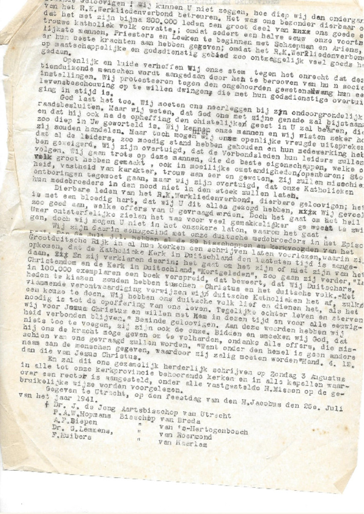 Brief van de Aartsbisschop en Bisschoppen van Nederland