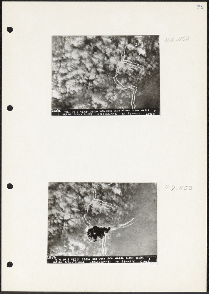 Luchtfoto Lancaster bommenwerpers boven Wesel 19-2-1945