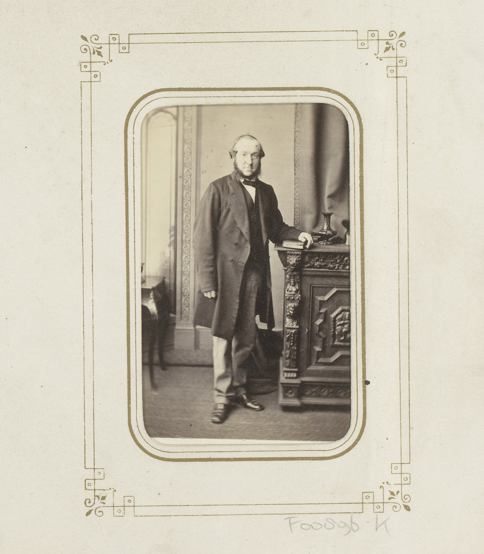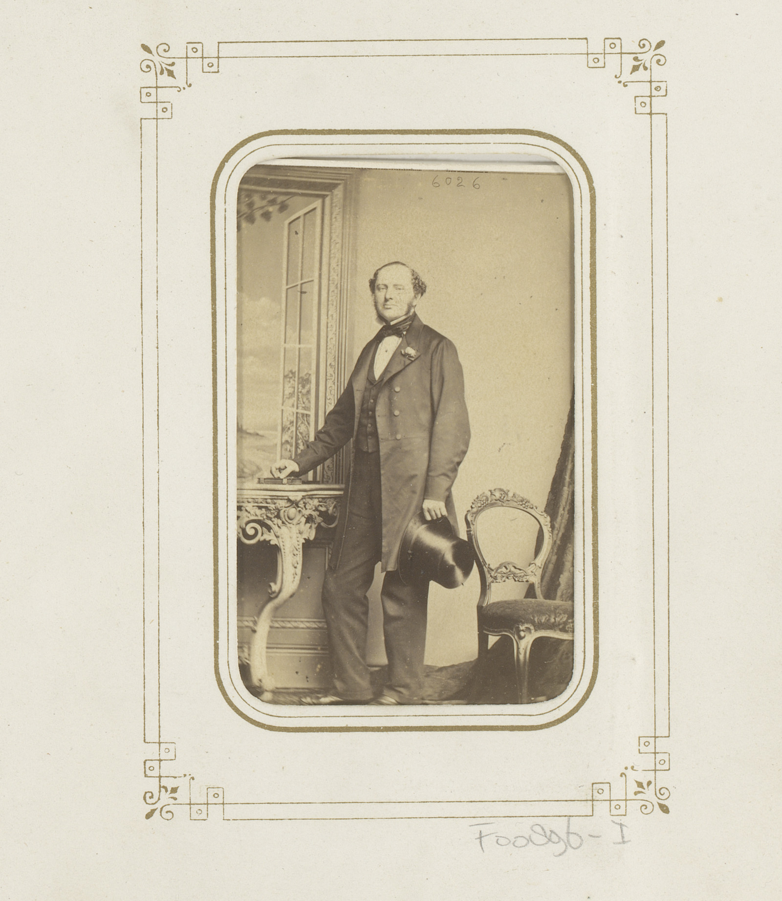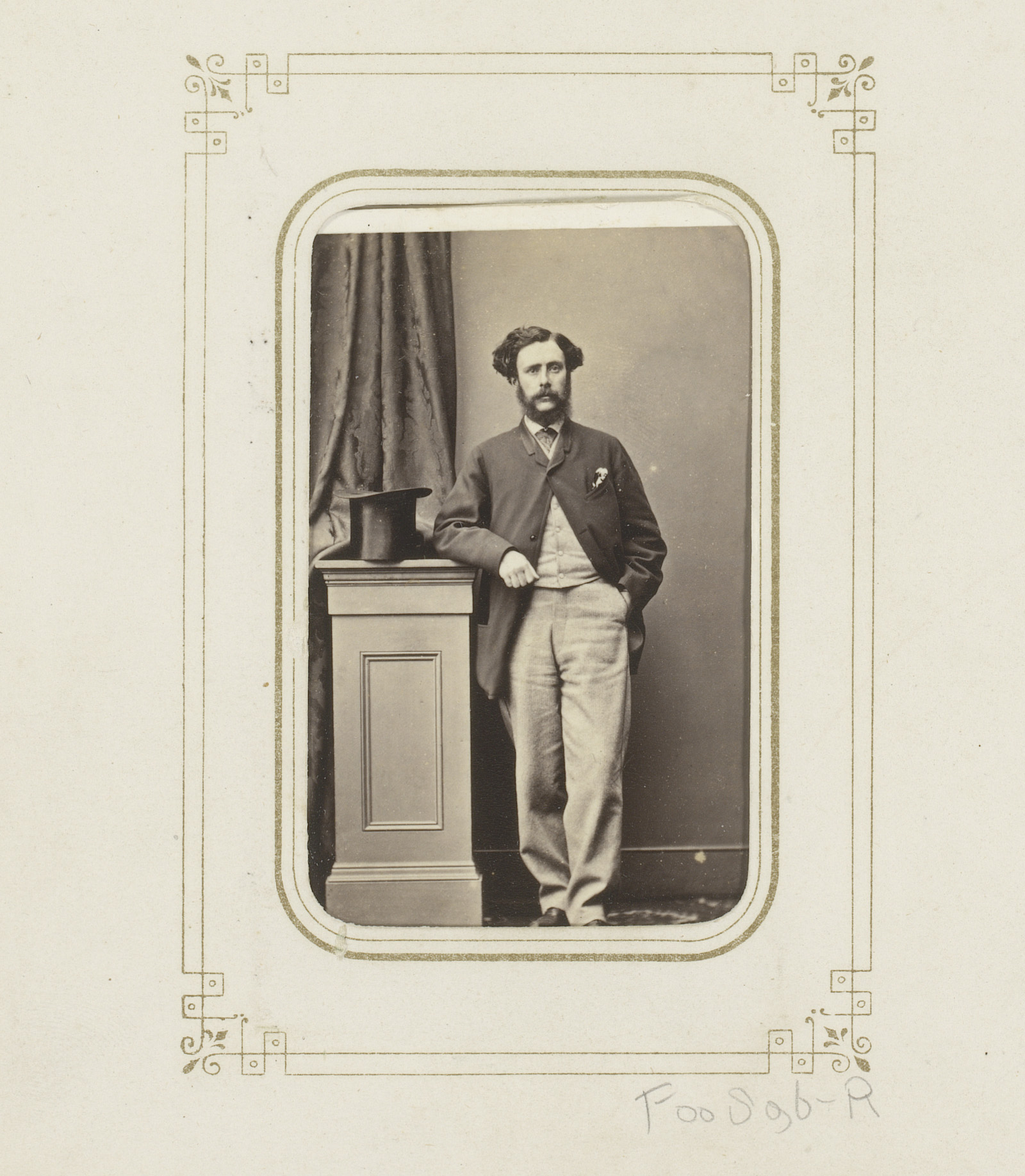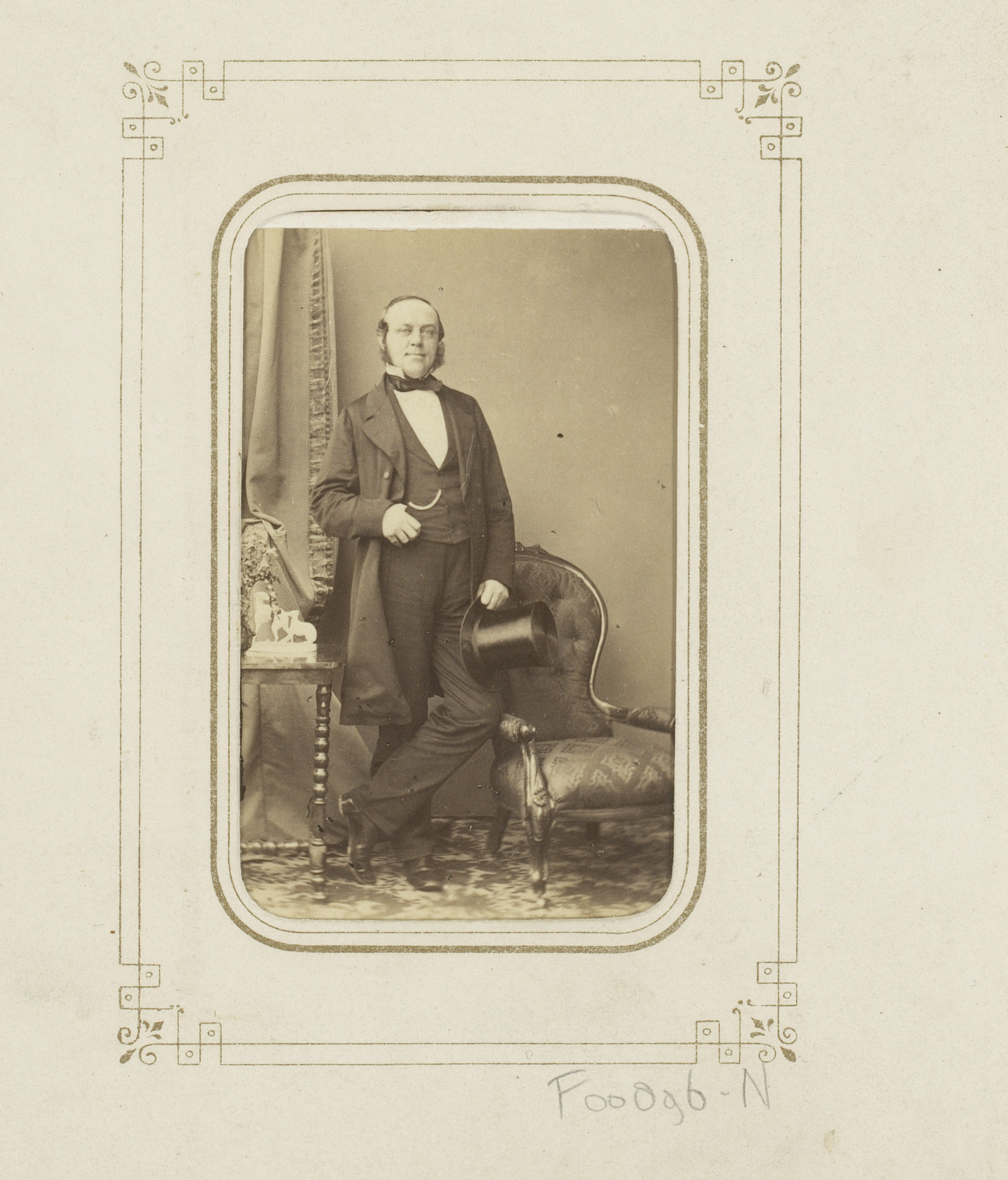 Portret van een staande man met een hoge hoed in de ...