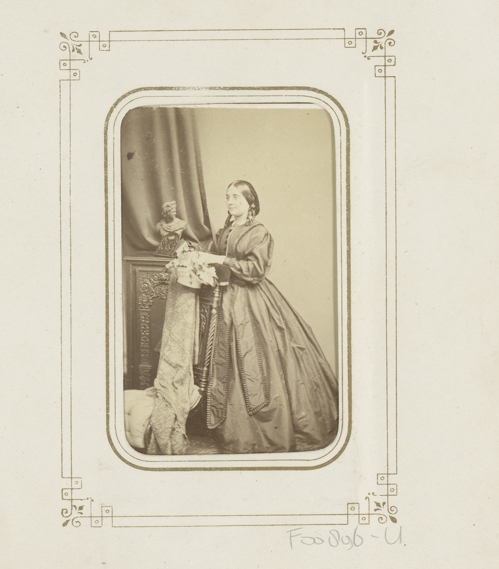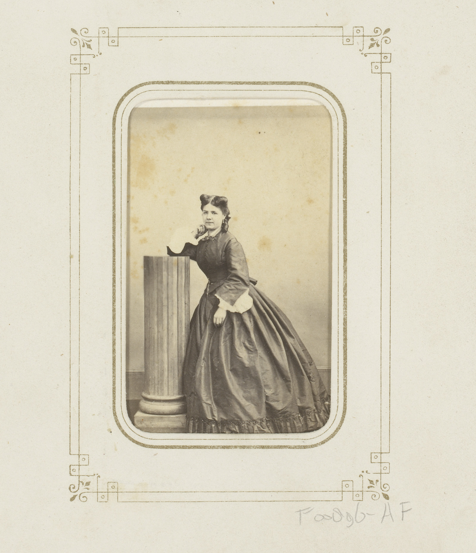 Portret van een vrouw, leunend op een zuil