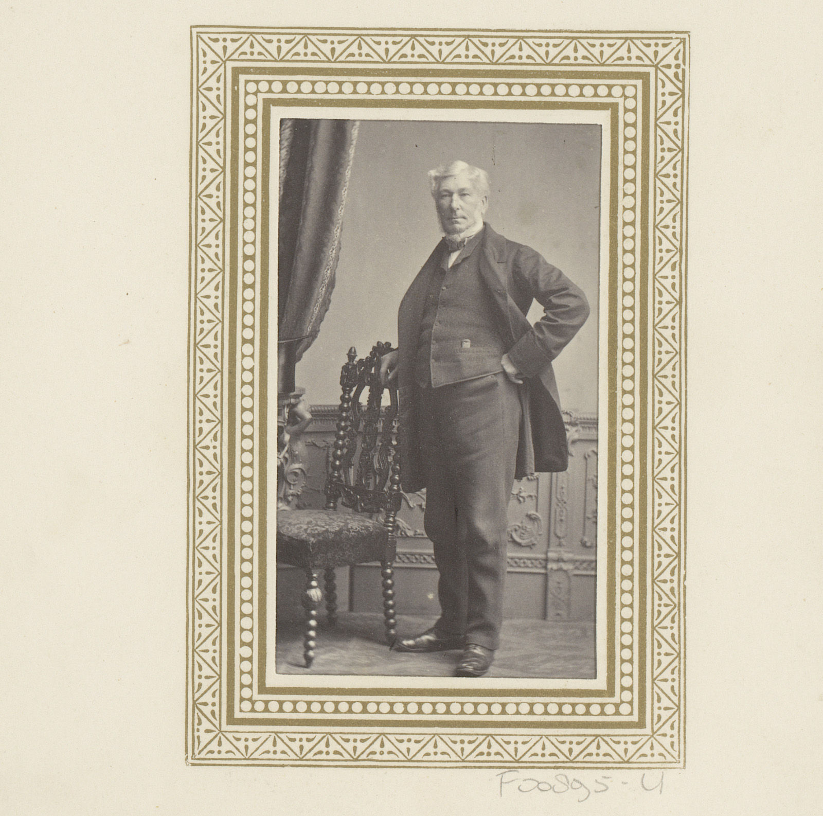 Portret van een man, leunend op een stoel