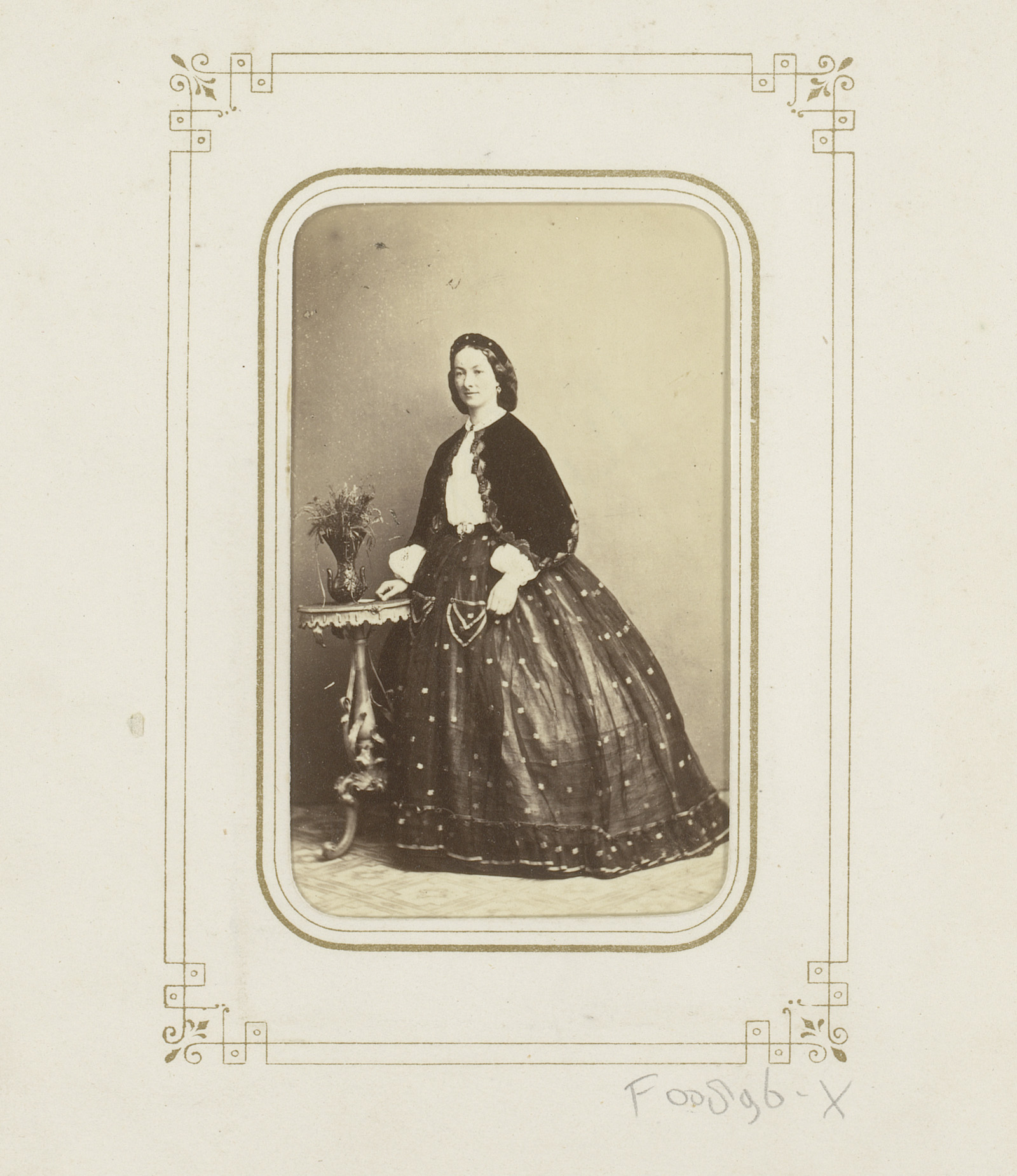 Portret van een vrouw, staand bij een tafel