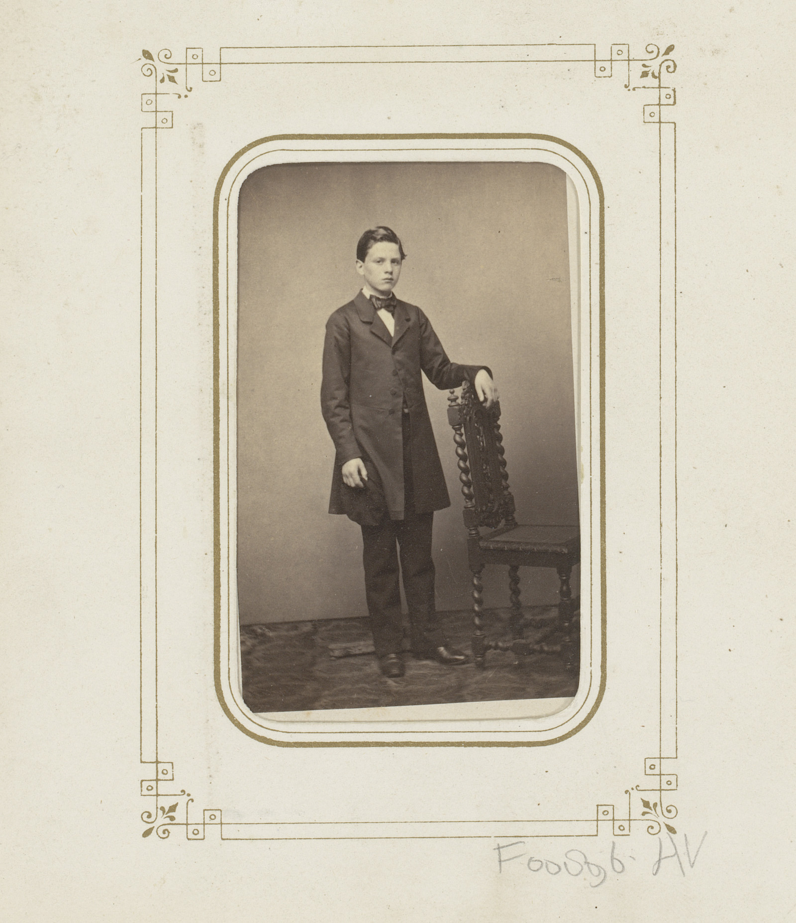 Portret van een jongen bij een stoel