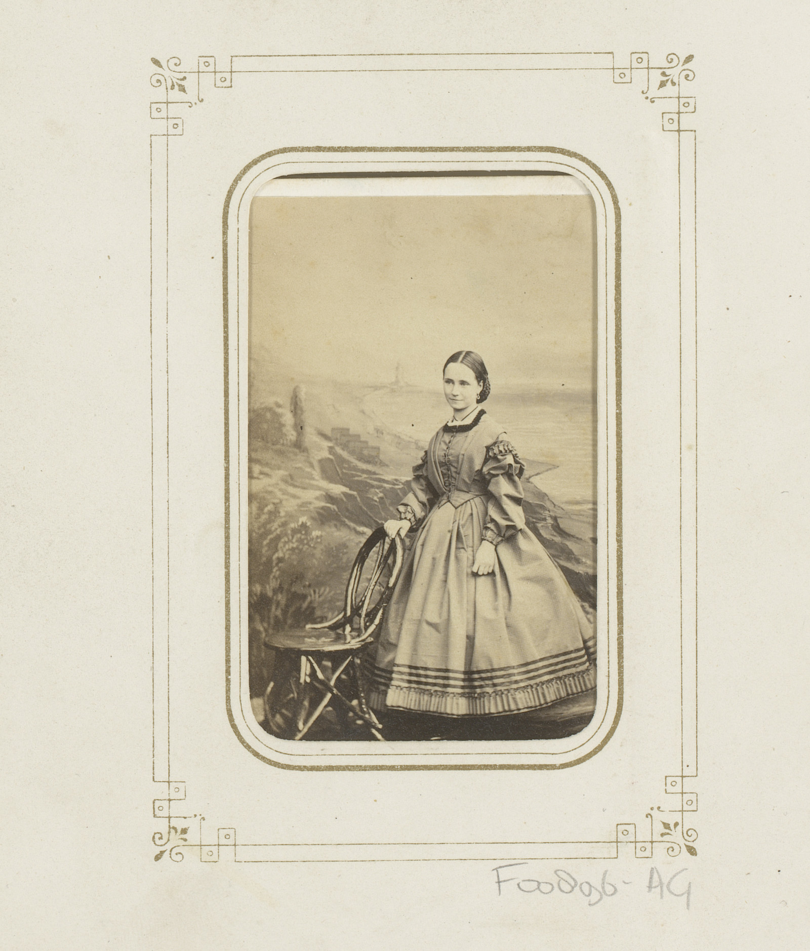 Portret van een staande vrouw bij een balustrade