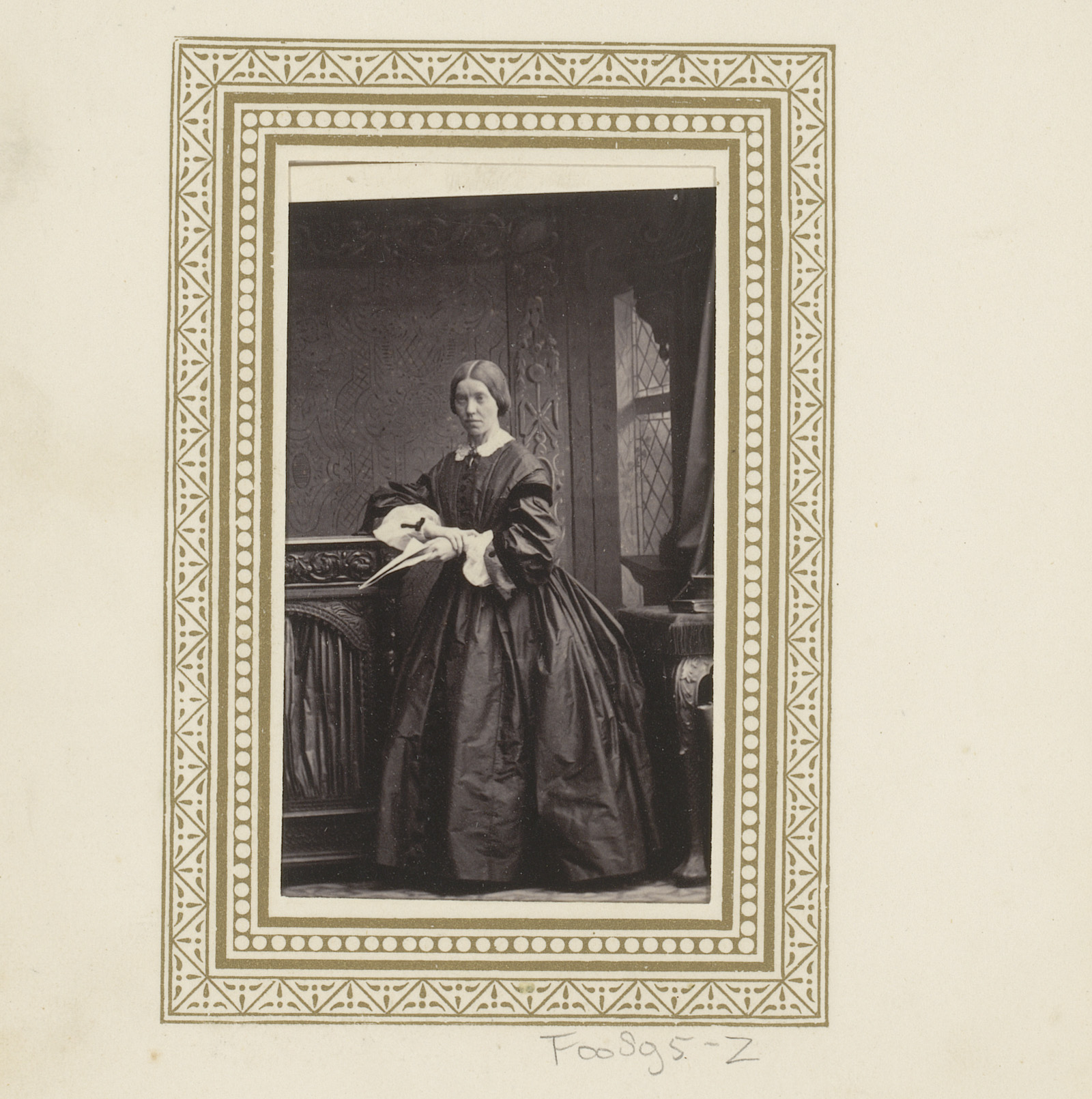 Portret van een vrouw, staand bij een raam