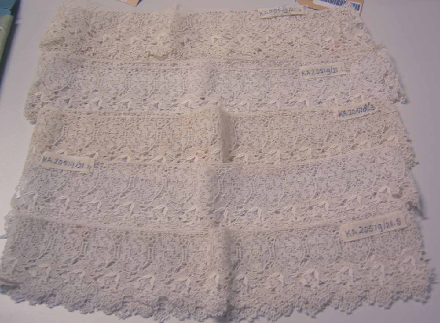 Diverse kantstalen, 2 strookjes kant