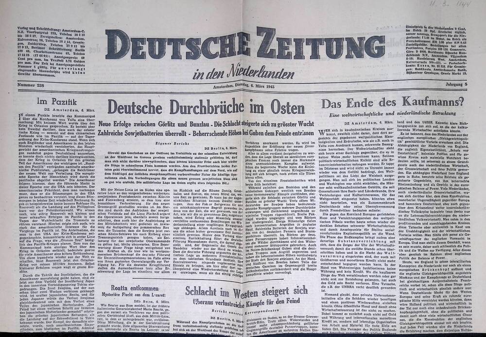 Deutsche Zeitung in den Niederlanden. 6 maart 1945.