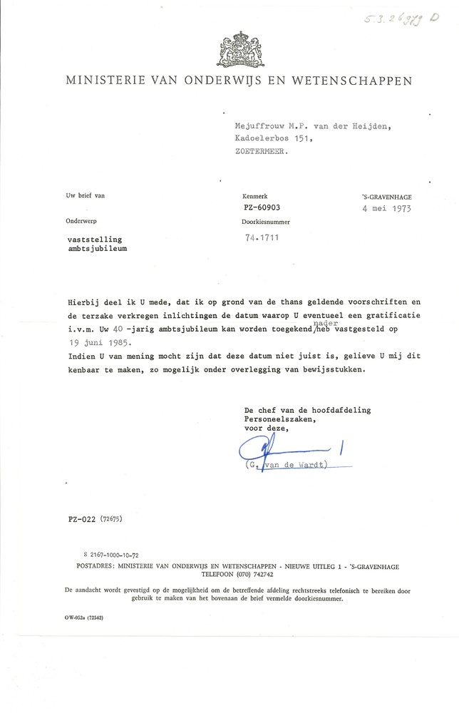 Lijst persoonlijke correspondentie W. Joosten en G. ...
