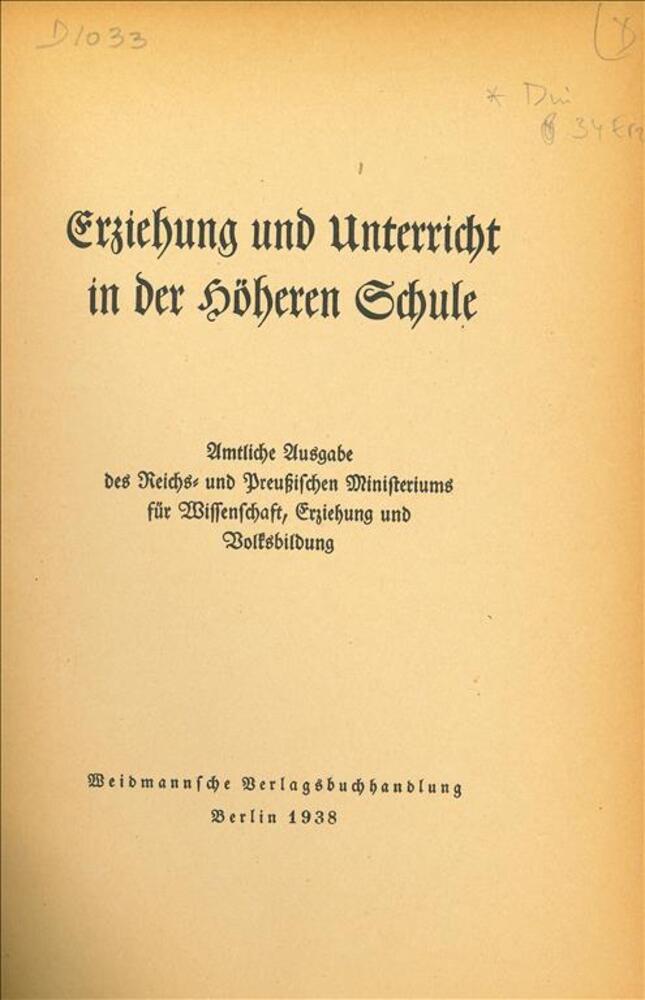 Erziehung und Unterricht in der Höheren Schule