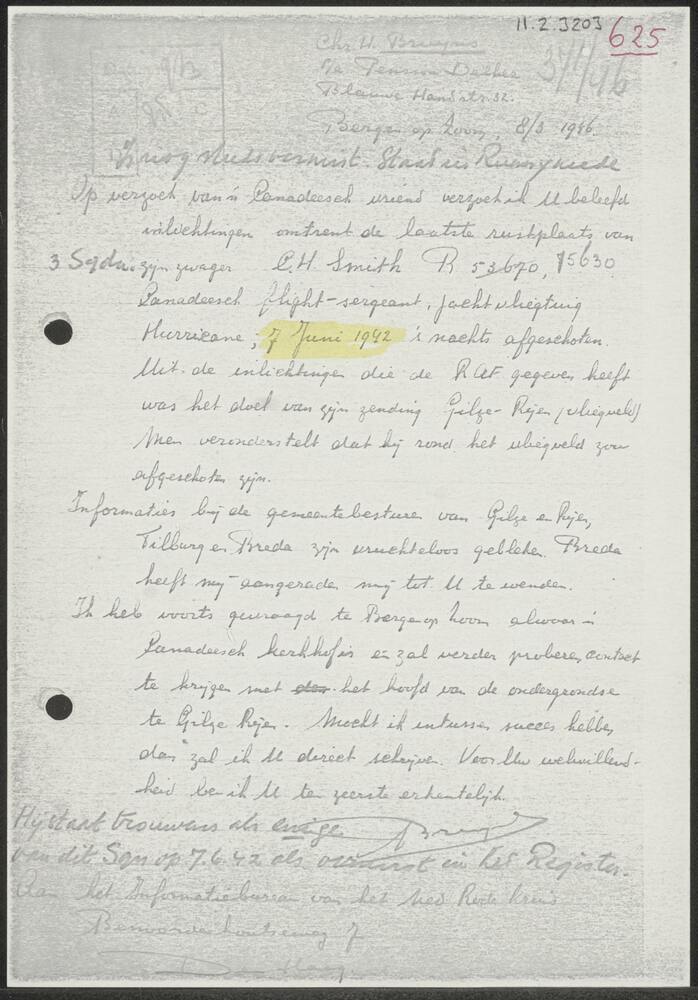 Brief Chr. Bruijnes, Bergen op Zoom 08-03-1946.