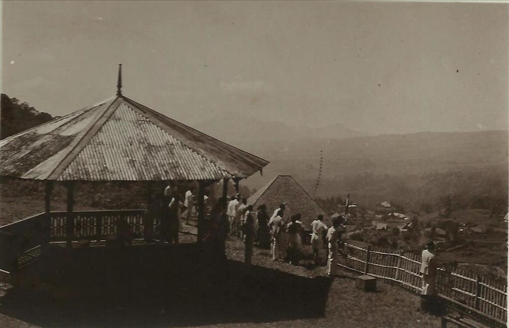 Nederlands Indië; open gebouw, uitkijkpost, burgers,...