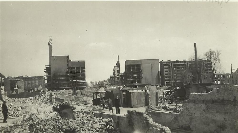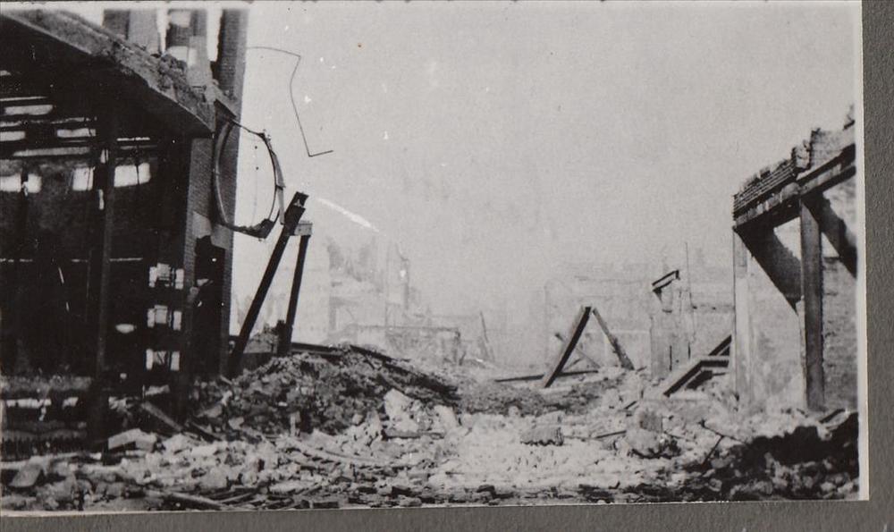Foto van de Hoogstraat te Rotterdam met verwoeste be...
