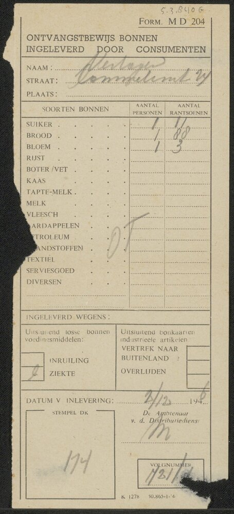 Ontvangstbewijs ingeleverde bonnen