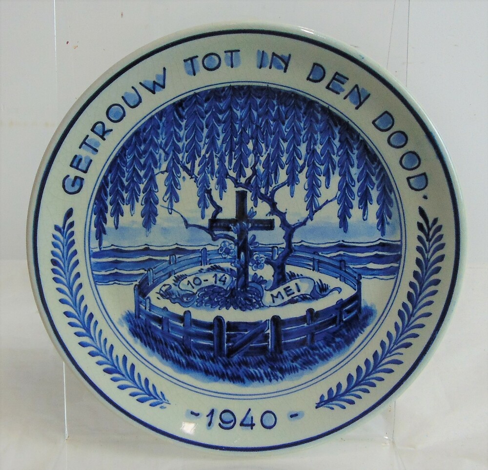 Herdenkingsbord blauw/wit met tekst 'Getrouw tot in ...