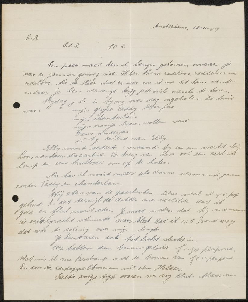 Brief uit Amsterdam "B.R., S.O.S. S.O.S