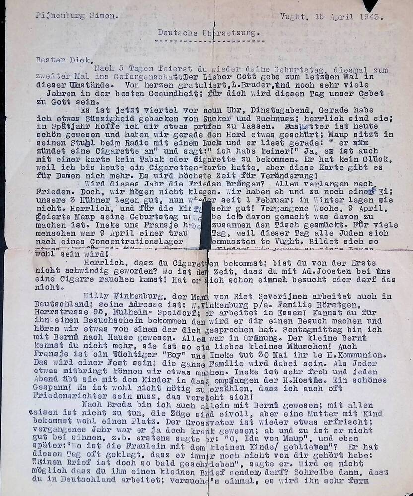 Bester Dick, Vught 15 april 1943