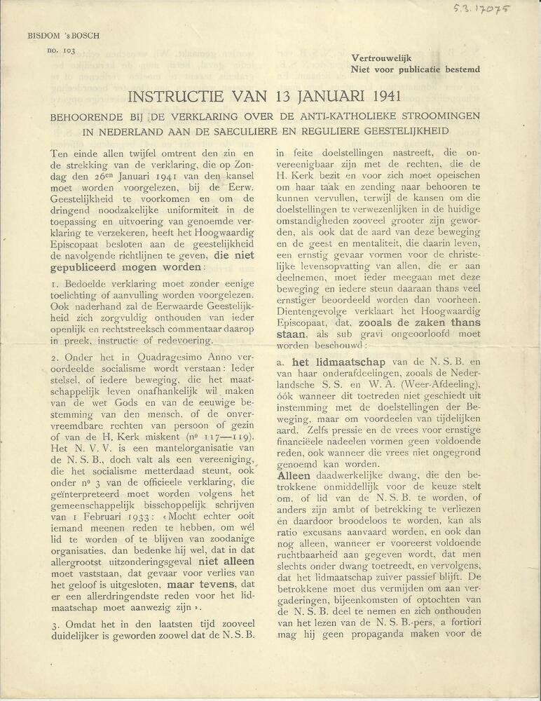 Brief van het bisdom 's-Hertogenbosch betreffende an...